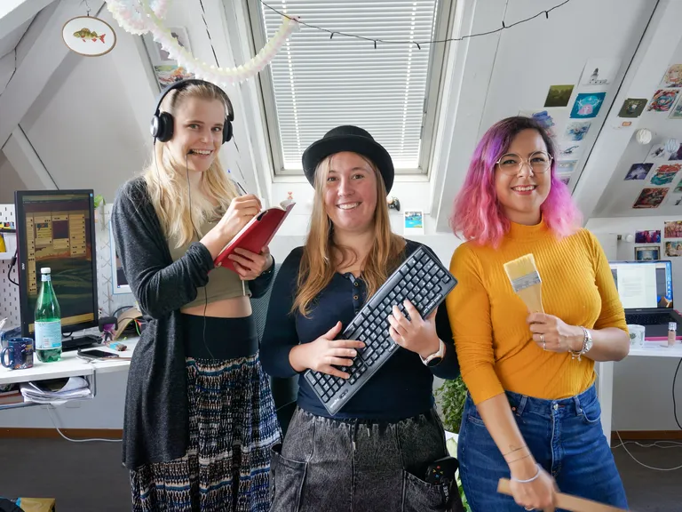 50 Prozent der Spielenden sind mittlerweile Frauen, trotzdem liegt der Frauenanteil bei den Entwickelnden gerade mal bei 22 Prozent. Woran liegt’s? Philomena Schwab fand den Einstieg in die Branche eher zufällig: Als Kind schrieb sie gerne Geschichten und zeichnete Comics. In der Oberstufe empfahl man ihr aber die Berufe Coiffeuse oder Floristin. Erst durch einen Freund, der eine Informatikerlehre machte, erfuhr sie vom Programmieren. «Er lieh mir seine Schulbücher aus, das Programmieren brachte ich mir selber bei», erzählt sie. Durch eine Freundin erfuhr sie vom Studiengang Game Design an der ZHdK und der Rest ist die Geschichte, an deren Ende Schwabs Firma «Stray Fawn» entstand. Zehn Mitarbeitende beschäftigt sie aktuell, vier davon sind Frauen.
